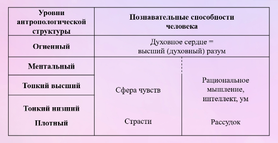 На онтологическом уровне единая всеначальная энергия в процессе уплотнения имеет всё более ярко и разнообразно выраженную полярность – в природе человека воплощён подобный же принцип. Высшие уровни антропологической структуры по своей сущности синтетичны, и в Учении как синонимы используются понятия: Духовное Сердце, Духовный, или Высший, Разум, также допустимо сказать Сердечный Разум. Человек достигает высшей ступени развития, поясняла Елена Ивановна, «когда его дух, разум и все чувства огненно претворились и слились в сердце, именно, когда разум становится сердцем и сердце разумом»15. Следующие ниже уровни сознания – ментальный, тонкий, плотный – отличаются нарастающей полюсностью между сферой чувств и рациональным мышлением (интеллектом, умом). В истории нашей культуры эта полярность проявлялась даже как борьба сердца и разума, сердца и мозга.