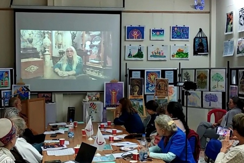Надежда Викторовна подчеркнула фундаментальное значение искусства в свете научного мировоззрения Живой Этики, или Агни Йоги. Искусство – это явление, жизненно необходимое для каждого человека, для его эволюции. Она напомнила, что в процессе творчества художник становится проводником: образы из мира духа и сферы мысли воплощаются в материи. Такие произведения, наполненные высокими идеями, способны вдохновить вдумчивого зрителя, читателя или слушателя на преображение и совершенствование себя и окружающего мира. Многообразие путей искусства позволяет каждому найти произведение, возвышающее дух, соответствующее его уровню сознания. Изобразительное искусство, в частности, говорит со зрителем уникальным языком цвета, ритма, линии и объема. Эти сложившиеся формы почти мгновенно отзываются в душе, приобщая человека к творческому огню. Докладчица процитировала Святослава Николаевича Рериха: «...зритель становится сотворцом, а картина – всегда живой для каждого, кто смотрит на неё». Это особенно верно для детского творчества – оно отличается невероятной непосредственностью переживаний, эмоциональностью и богатством впечатлений. Детский рисунок – это искренность чувства, диктующая форму образа. Несмотря на то, что не всем удается сохранить детскую выразительность, овладев при этом реалистичными приемами, заложенные в юности идеи и творческий опыт не исчезают. Они прорастают неведомыми путями, становясь важными ступенями в формировании будущей личности. В этом процессе ключевой является роль учителя: вдохновить и напитать образами; вовлечь ученика в творческое общение с произведениями искусства; утончать чувства и устремлять к Высшему. Иначе, как отметила Надежда Викторовна, обучение рискует превратиться в «холодную ремесленную работу», которая может уничтожить талант, вместо того чтобы развивать его. На фоне современных мировых событий юное поколение особенно вдохновляют темы, заложенные в наследии Рериха: археологические исследования его семьи; охрана памятников культуры и великих личностей; темы мужества, героизма, сострадания и милосердия. Древние легенды и народный эпос вновь оживают в мечтах о счастье и благе для всех. Молодежь демонстрирует готовность сознательно подходить к лучшим созидательным устремлениям человечества, стремясь стать создателями нового, лучшего мира. Вдохновляющий доклад Надежды Викторовны стал достойным завершением Конференции.