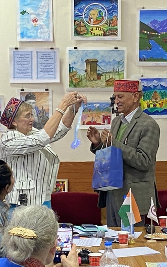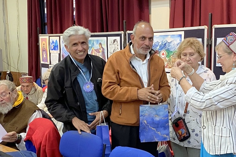 Первый докладчик, доктор Ом Кумар Шарма, почтенный основатель и руководитель школы санскрита в Кулу, в своем выступлении глубоко раскрыл связь между идеями Николая Константиновича Рериха о защите культурных ценностей, его концепцией «Мир через Культуру» и исконными принципами индийской философии, корни которых уходят в ведийские тексты. В своей речи, украшенной декламацией замечательных шлок и священных мантр из древних санскритских текстов, доктор Ом подчеркнул, что идея мира – шанти (Śānti) – не только желаемое состояние, но и внутренне присущий принцип, заложенный в самых ранних текстах и неотделимый от идеи дхармы. Эта идея, являющаяся одним из ключевых понятий индийской философии, часто неверно переводится как «религия». В своем глубинном смысле дхарма означает Вселенский закон, праведность, основополагающую природу или правильный, должный путь существования. Докладчик заметил, что лишь через становление личной культуры и развитие благородных качеств – таких как кшама (прощение), дама (контроль над чувствами), шауча (внутренняя и внешняя чистота) и других– человек становится сопричастен своей дхарме. Именно через следование дхарме и раскрывается путь к истинной Культуре, позволяющей обрести состояние шанти – невозмутимого покоя и гармонии. Постижение шанти и следование дхарме в контексте личной жизни делает человека способным стать осознанным звеном в эволюции всего человечества. Индивидуальное самосовершенствование, преображение сознания являются, таким образом, ключом к преображению мира.