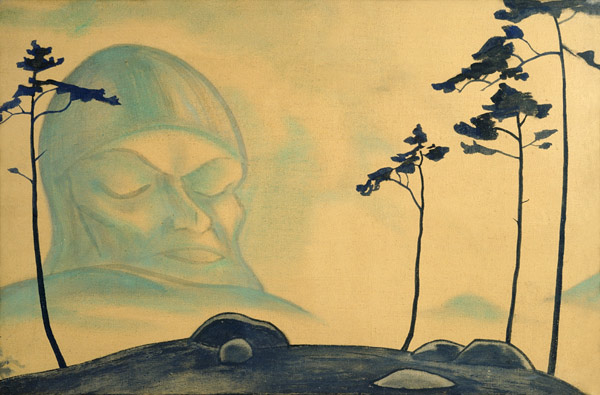 В ней он развивает тему полотна 1920 года «Сон Востока», на котором изображена гигантская голова спящего богатыря. Великан спит, глаза его закрыты.