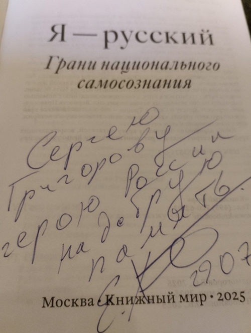 Когда был в короткой командировке в Москве, Егор Холмогоров подписал мне свою книгу, герою России. Я, конечно, никакой не герой России. Я всего лишь гражданский человек на войне, который в меру своих очень скромных военных способностей старается делать хоть что-то полезное на фронте.