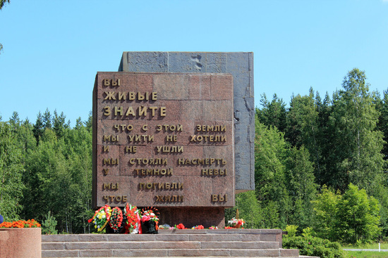 Надпись на памятнике «Рубежный камень» на «Невском пятачке».