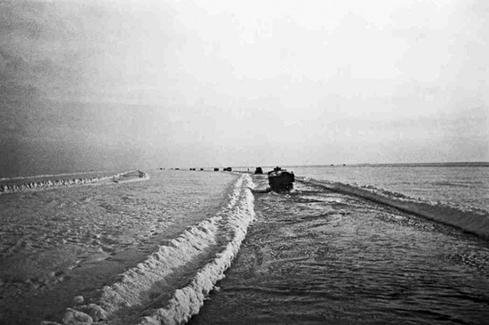 Блокада Ленинграда. На водно-ледяной трассе Ладожского озера — «Дороге жизни».