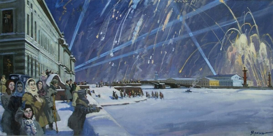 Последний вражеский артиллерийский снаряд разорвался в городе 22 января 1944 года, а спустя несколько дней, 27 января, победоносным наступлением советских войск была окончательно снята блокада. Это событие ознаменовали артиллерийским салютом на берегах Невы из 324 орудий 24 артиллерийскими залпами, возвестив таким образом всему миру о великом успехе Красной Армии под Ленинградом.