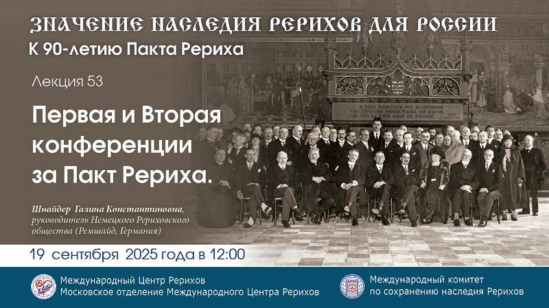 19 сентября 2025 года (пятница) в 12:00 в рамках программы состоится онлайн-лекция «Первая и Вторая конференции за Пакт Рериха».