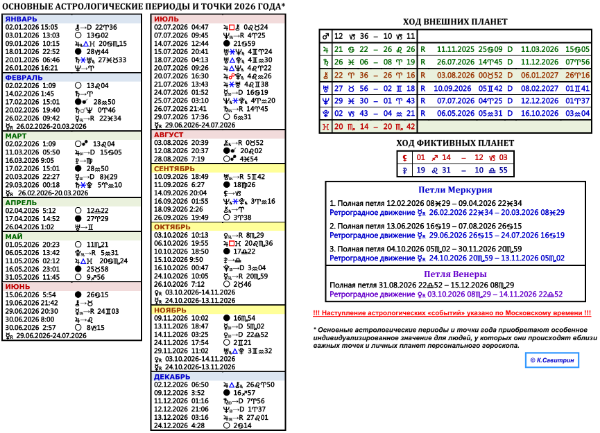 Основные астрологические периоды и точки 2026 года. К.Савитрин