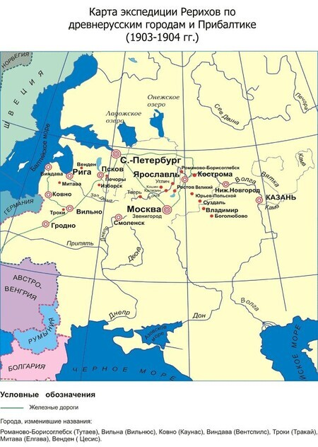К выставочному проекту «Красота старины – устой настоящего и мост в будущее» присоединились города Волосово (Ленинградская область) и Данилов (Ярославская область), которые не входили в маршрут Рерихов 120 лет тому назад. Но творчество всемирно известного художника и сама выставка вызвали здесь большой интерес. В 2020 году в Волосове на территории сквера Школы искусств установлен памятник Николаю Константиновичу Рериху, а сама щкола носит его имя. Примечательно, что над зданием Даниловской художественной галереи, исторического особняка XIX века, в 2015 году было поднято Знамя Мира, которое Международный Центр Рерихов вручил городу во время проведения выставки «Пакт Рериха. История и современность».
