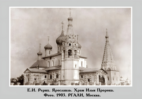 Ярославской области во время путешествия Рерихов было уделено особое внимание. Рерихи посетили четыре города: Ростов Великий, Ярославль, Романов-Борисоглебск и Углич. На этюдах Николая Константиновича и фотографиях Елены Ивановны мы видим, как выглядели 120 лет назад порталы храмов Николы Мокрого и Иоанна Предтечи в Ярославле, а также деревянная Церковь на Ишне близ Ростова Великого без позднейших пристроек. Ярославская церковь Святого Власия осталась только на картине художника. К сожалению, в 1933 году ее снесли.