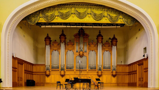 Сцена Большого зала Московской государственной консерватории имении П. И. Чайковского.