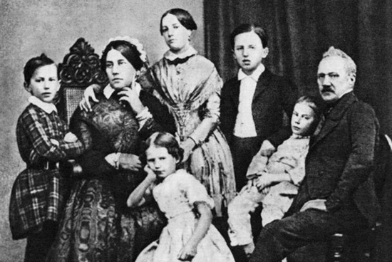Семья Чайковских. Литогравюра начала 1850-х гг. Крайний слева — Петр Чайковский.